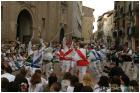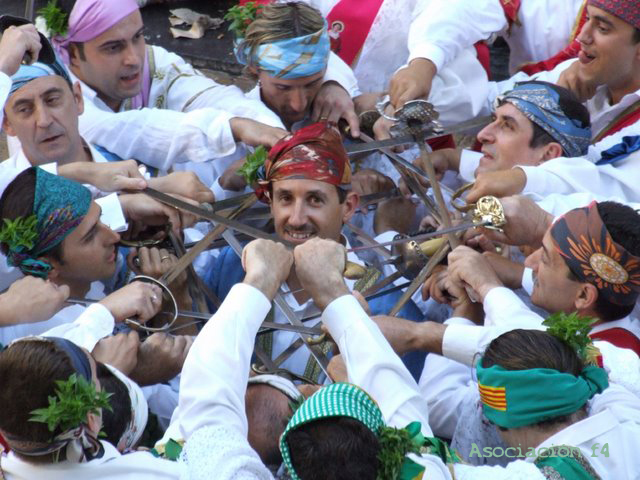 Al finalizar, la misa pontifical se vuelve a ejecutar la danza de las espadas para acompañar al Cabildo Municipal hasta el Ayuntamiento