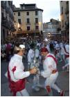 Los danzantes de Huesca y la banda de música cierran la Ofrenda, realizando sus danzas a lo largo de todo el recorrido de la misma. Al llegar a las proximidades de la Basílica de San Lorenzo, mientras una familia de la Agrupación realiza la ofrenda al Santo, se interpreta la danza del "degollau". Finalmente, la danza de las espadas, delante de la peana de San Lorenzo, constituye la ofrenda final de los danzantes y de la ciudad de Huesca a su patrón.