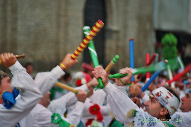 Los dances de "los Palos" conforman cinco o seis cuadros constituidos cada uno por cuatro danzantes que bailan cruzándose, cambiandose los sitios y golpeando con los palos hacia el suelo y el cielo. Se utilizan dos palos , hechos de maderas fuertes y sonantes como acacia, boj o carrasca, que estan pintados con los mismos colores que tiene cada danzante en su traje (visualizar video)