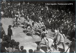 Danzantes en 1922 Entre los años 1917 y 1923 el número de danzantes disminuyó y solamente danzaban tres cuadros, por lo que no se realizaba el dance de las cintas (I. San Agustin. Fototeca de la DPH) |