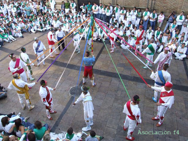 Dos palos de madera muy resistente, casi siempre de bojo o de carrasca, preferiblemente de pie, permiten soportar los golpes que los danzantes se intercambian entre sí. Cada "palo va provisto de un cordel o cinta para sujetarse a la muñeca. Antiguamente, estos palos eran redondeados por artesanos o por los propios danzantes. Hasta hace muy pocos años era Gregorio Gracia quien los tornaba, en ese viejo torno de madera, hoy preciada pieza de museo. ¿Cuantos "palos" de danzar habrán pasado por sus manos?