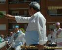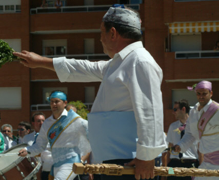 Como complementos, un bastón de "mando" que porta en la mano derecha y un ramo de olorosa albahaca en la otra mano. En el baston que luce el actual mayoral, Pascual Campo, se pueden observar tallados los 27 danzantes de la Agrupación.