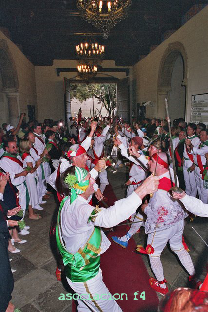 Al finalizar, la misa pontifical se vuelve a ejecutar la danza de las espadas para acompañar al Cabildo Municipal hasta el Ayuntamiento