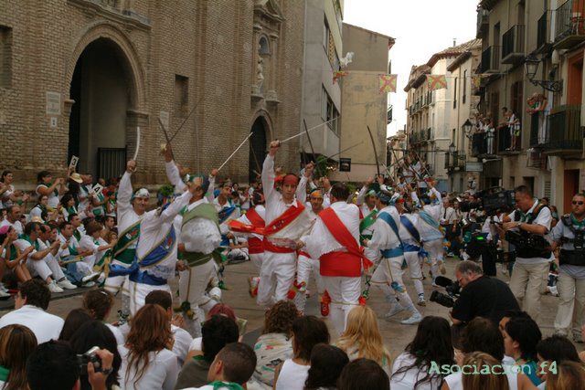 De todas las actuaciones de los danzantes, la primera que tiene lugar el día 10 se considera como la más importante entre los oscenses. Esta tiene lugar en la pequeña plaza de San Lorenzo, a la cual acude una gran cantidad de espectadores para poderla ver que llenan tanto la plaza como las calles adyacentes a la misma. Las personas que ocupan las últimas filas no están en buena situación; no obstante, no se conforman sin llegar a esta actuación que tiene lugar una vez al año, sino que quieren ver a los Danzantes aunque sea solo un instante. La mayoría de las primeras filas es gente joven, que ha esperado mucho tiempo trasnochando. Ellos dien que hay que estar en la plaza desde las 4 ó 5 de la madrugada para conseguir el mejor sitio desde el que apreciar los bailes, que empiezan a las 8,30.