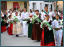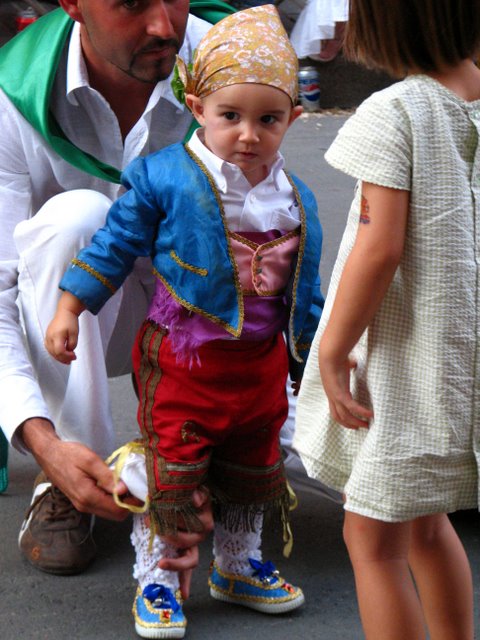 Los danzantes de Huesca y la banda de música cierran la Ofrenda, realizando sus danzas a lo largo de todo el recorrido de la misma. Al llegar a las proximidades de la Basílica de San Lorenzo, mientras una familia de la Agrupación realiza la ofrenda al Santo, se interpreta la danza del "degollau". Finalmente, la danza de las espadas, delante de la peana de San Lorenzo, constituye la ofrenda final de los danzantes y de la ciudad de Huesca a su patrón.