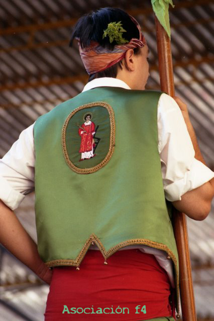 La indumentaria del "Rapatán", que porta el palo de la albahaca, es muy parecida a la de su compañero del palo de las cintas, camisa blanca, chaleco parecido al de jotero con un San Lorenzo pintado o bordado en la espalda, calzón, medias, alpargatas y en las sienes un pañuelo similar al cachirulo.