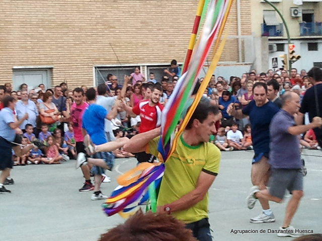 El día 11 de agosto los Danzantes participan en la Fiesta del Comercio, visitan un barrio de la ciudad (este año correspondía el de San José), pero también acuden a varios Centros Asistenciales para acercar el dance y la fiesta a las personas que por edad o enfermedad no pueden disfrutar de las fiestas laurentinas en la ciudad. Este año la Agrupación, junto con la Banda de Música de Huesca, visitó el Centro de Rehabilitación Mental "Santo Cristo de los Milagros" y la Residencia Nuestra Señora del Pilar.