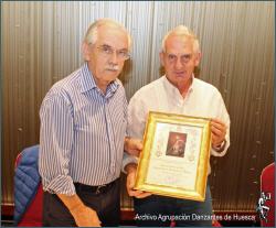 La cofradía del Santo Cristo de los Milagros y San Lorenzo Mártir otorga el título de Cofrade de honor, a la Agrupación de Danzantes de Huesca. Entrega dicho título, el Prior Félix Paraíso Alastruey y lo recoge nuestro Mayoral Francisco San Emeterio. |